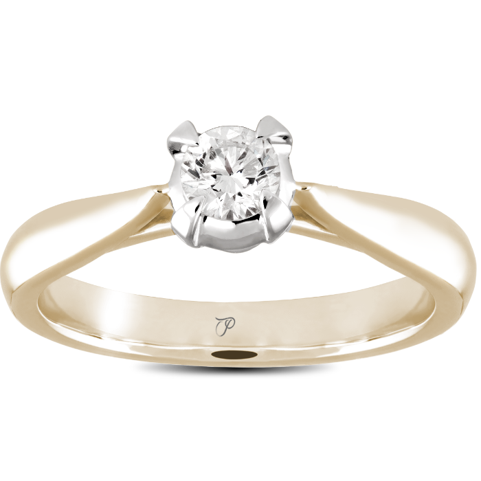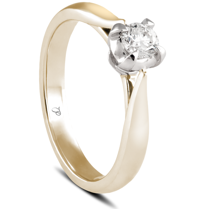 Dviejų aukso spalvų sužadėtuvių žiedas su briliantu. Laiko patikrintas klasikinis dizainas; Prabangi ir gracinga konstrukcija; Dvi aukso spalvos; Kokybiškas centrinis 3,75 mm briliantas; Saugus pasirinkimas.
