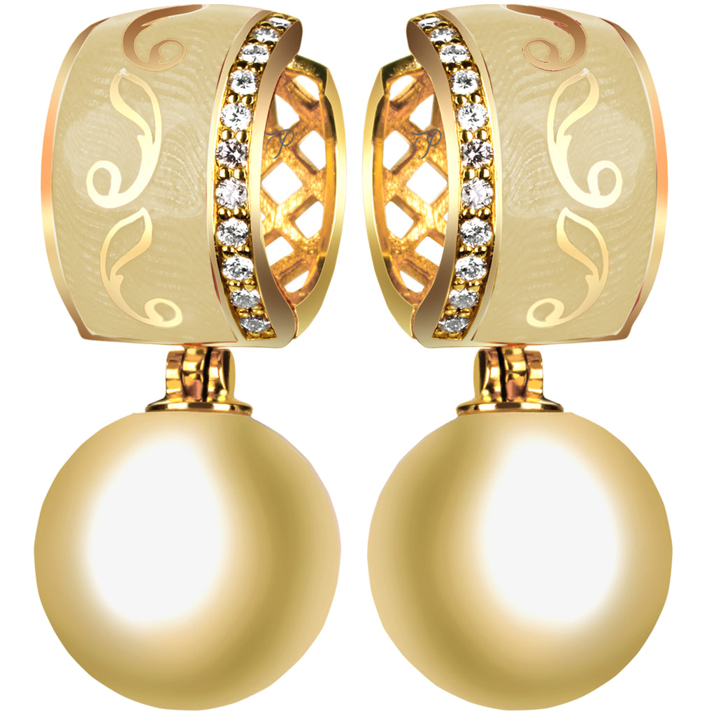 Ypatingi auksiniai auskarai moterims, dekoruoti aukso emaliu, briliantais, padabinti pietų jūrų perlais. Pridės nepamirštamos elegancijos ir prabangos visomis ypatingomis progomis. Auskarai yra pagaminti iš dviejų dalių. Pirmoji jų - emalinė viršutinė dalis, kuri yra rinkučių formos. Čia emalio aikštelėje yra auksu išraižyti rasos lašelių motyvai. Kadangi rasa visuomet iškrenta naktį negirdimai ir paprastai anksti ryte paslaptingai atspindi pirmuosius saulės spindulius, tai ji yra laikoma išganymo ir gyvenimo atsinaujinimo simboliu. Taip pat seniau buvo manoma jog rasa susidaro nuo mėnulio ir suteikia nemirtingumą. Galiausiai auskarų pačioje subtiliai kabo savaime vertingi jūriniai perlai, akinančiai baltos spalvos, aukštos kokybės.