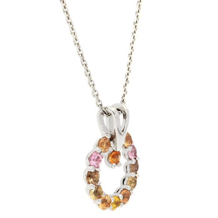 Stilingas ir žaismingas auksinis pakabukas moterims, puoštas spalvotais safyrais. Kiekviena brangakmenio karūnėlė yra pakankamai atvira, kad žibėjimas būtų nepakartojamas. Subtilus ir autentiškas dizainas; Puošta įvairių pastelės spalvų safyrais; Nestandartinis užvėrimas; Tinka kasdienai.