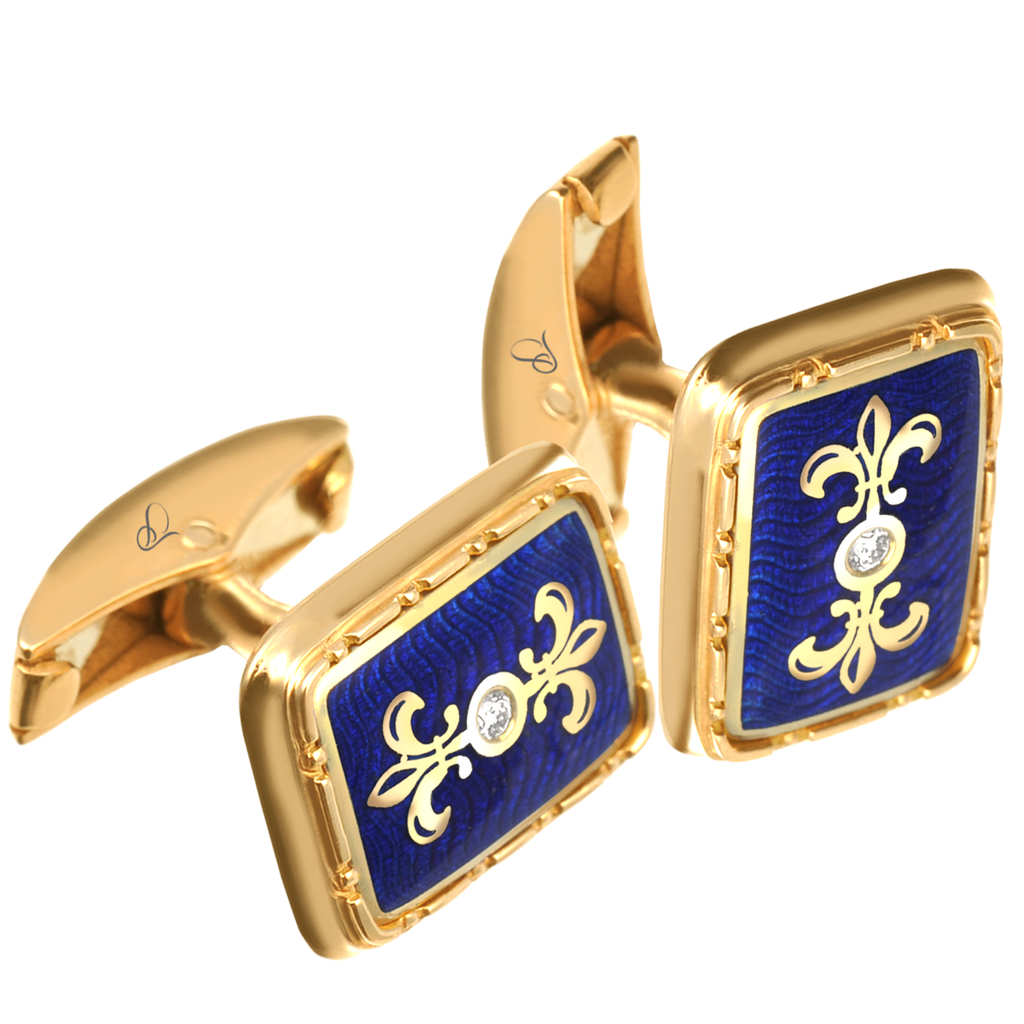 BAROQUE cufflinks 750 yellow gold, enamel, diamonds