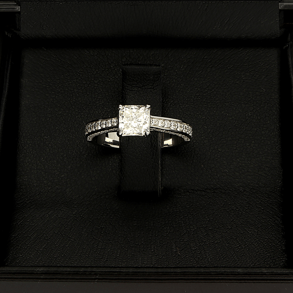 A ring for those who want to celebrate love solemnly! An impressive ring, all edges, even the side ones, are studded with selected diamonds. And in the center there is even 0.91 ct. a white and clean and brilliantly cut diamond, the quality of which is evidenced by the prestigious IGI certificate. The ring is designed for an exclusive engagement or for women looking for a special piece of jewelry that sparkles for a ceremony, but is also suitable for everyday wear. Impressive and timeless design; All the edges of the ring are studded with diamonds; Only selected particularly sparkling diamonds; Center ~ 0.90 ct perfectly cut brilliant; The warmth of handwork, the precision of the latest technologies; An unsurpassedly sparkling ring, but adapted for everyday wear.